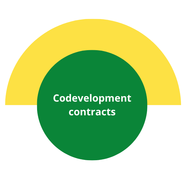 Collaborative co-development contracts with clear commitments, where each partner contributes shared resources, expertise, and skills.